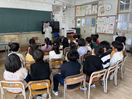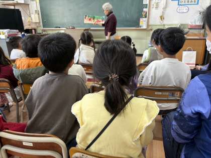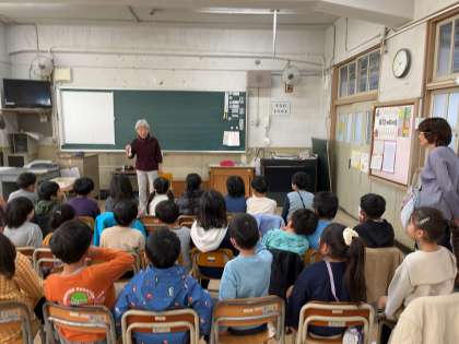 ベルが鳴ると、お話会の世界に変わりました。子どもたちは、いろいろなお話に興味をもって聞いていました。