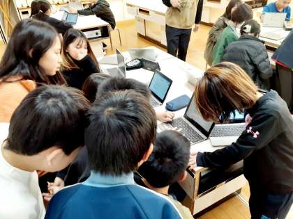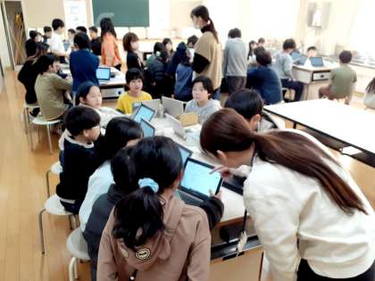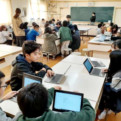 学習者用端末でワークシートを同時編集しながら、考えをまとめていました。