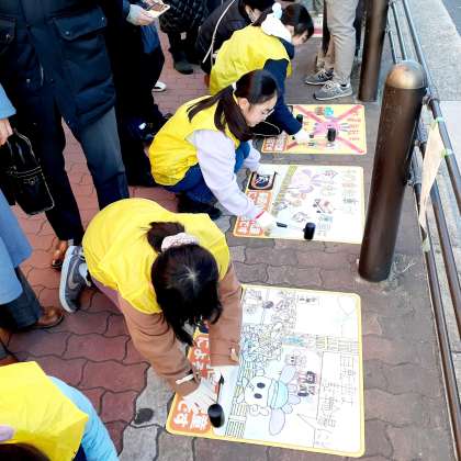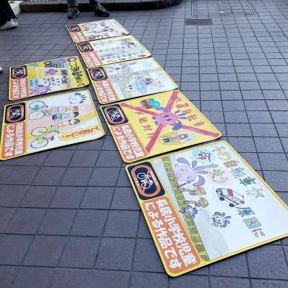 住吉区主催の「放置自転車問題をテーマにした児童絵画」において、本校から351作品を出品しました。その中から3作品が選ばれ、路面シートとして採用されました。