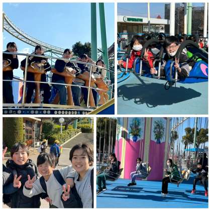 ひらかたパークに到着しました。ワクワクした表情でさっそくアトラクションへ!寒さをふきとばす笑顔があふれ、楽しそうな声が園内に響きます。早朝より準備をしてくださった保護者の皆様、ありがとうございます。 友達と一緒に過ごす最高の一日がスタートです!