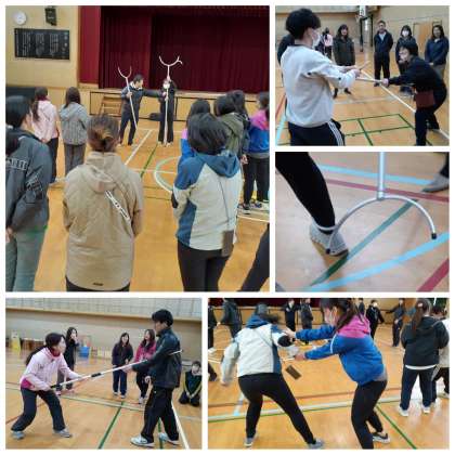 住吉警察の協力を得て、教職員向けの防犯訓練を実施しました。不審者対応時の適切な行動を身につけるため、さすまたの基本操作やからだの使い方を学びました。対人の実技も交え、万が一の事態に備えたスキル向上に努めました。