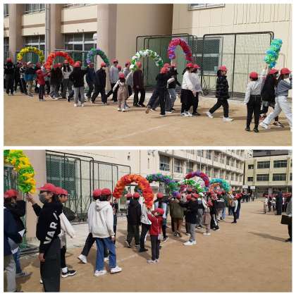 新調されたアーチをくぐって卒業生が入場し、晴れやかに式が始まりました。先生あてクイズで歓声が湧き、在校生から温かいお祝いのことばが届けられました。卒業生からのお礼のことばには、感謝の気持ちと「6年生からの挑戦状」も込められていました。全校児童で歌う今年度最後の校歌は、澄んだ歌声となって空へと響き渡りました。卒業生のみなさん、学校を引っ張ってくれて本当にありがとう!その想いは在校生にしっかり受け継がれます。