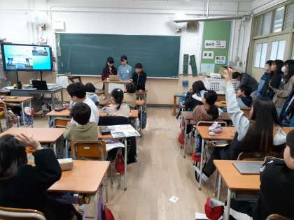 各委員会ごとにプレゼンテーションを作成し、クイズを入れるなどの工夫もして、活動内容を分かりやすく伝えました。4年生からの質問にもしっかりと答えました。