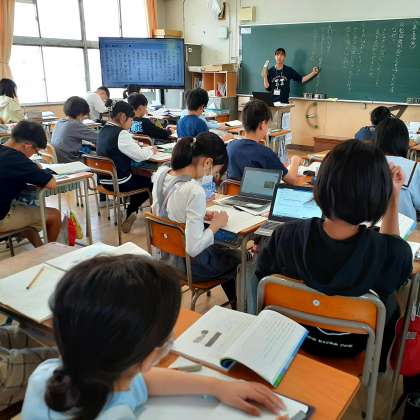 教室では国語の学習に集中する姿が見られ、講堂では体育の授業に元気いっぱい取り組む学級もありました。友だちと声をかけ合いながら体を動かす中で、楽しそうな笑顔がたくさん見られました。