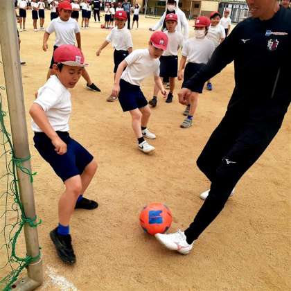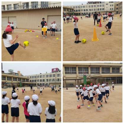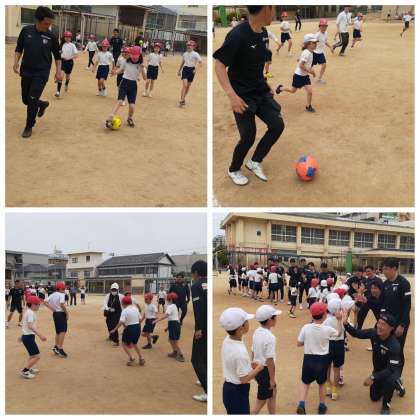 続いて、4年生がセレッソ大阪のコーチによる特別授業に参加しました。ウォーミングアップからボールを使った練習まで、楽しみながら集中して取り組む姿が見られました。ゲームでは、子どもたちの元気な声が校庭に響きわたり、笑顔とやる気にあふれる、充実した時間となりました!