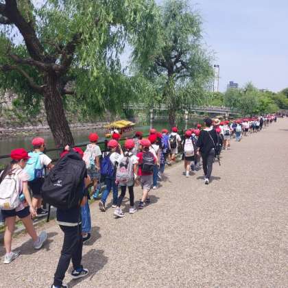 本日は絶好の遠足日和。早朝の風が心地よく感じられます。3年生は元気いっぱいに大阪城方面へ出発しました。子どもたちはリュックを背負い、期待に胸をふくらませています。保護者の皆さま、お弁当の準備などありがとうございました!