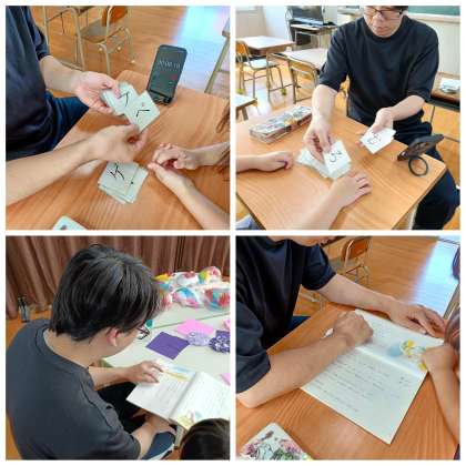 低学年のフレンド教室での学習のようすです。ひらがなやカタカナの濁音・拗音などの読みを確認した後、教科書の物語文にそって学習を進めました。登場人物の気持ちに寄りそいながら、ことばの意味を丁寧に読み取る姿が見られました。