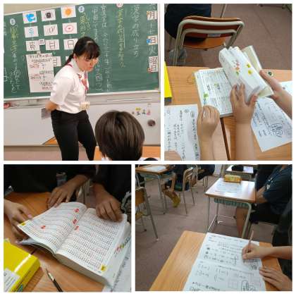 高学年のフレンド教室では、漢字の成り立ちについて学びました。象形文字と指事文字の違いを知り、漢字辞典を使って練習問題に取り組みました。友だちと相談しながら、他の漢字がどの種類かを調べる姿が見られました。