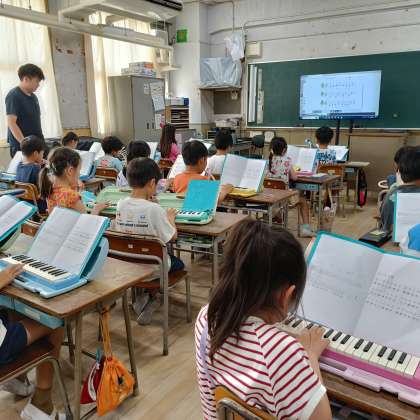 音楽の学習では、鍵盤ハーモニカで友だちと息を合わせながら、楽しく演奏していました。