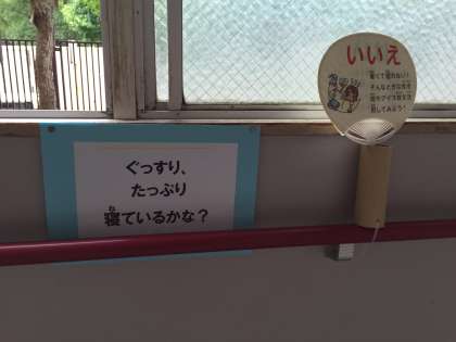 つめのことや、日頃の睡眠のこと、水分のことなど、自分自身で気をつけてほしいことを掲示しています。みなさんはすべて「はい」でしょうか。