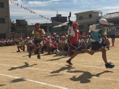 運動会の花形種目リレーです。