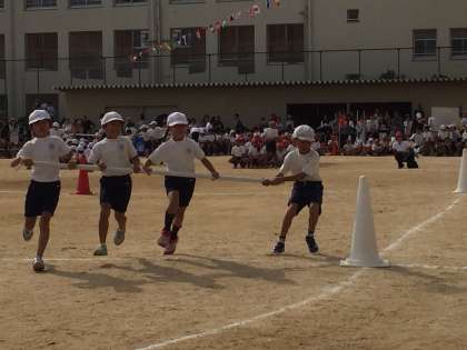 端の二人の呼吸と、真ん中の二人は端の二人に力を合わせて一生懸命に走りました。