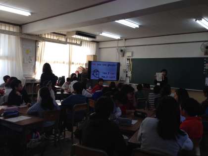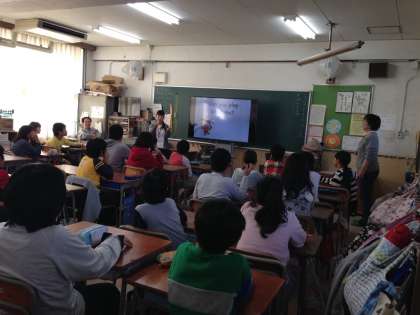 我孫子中学校の英語の先生による出前授業が、6年生を対象にありました。