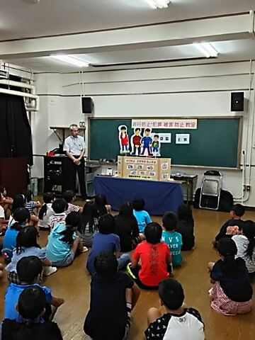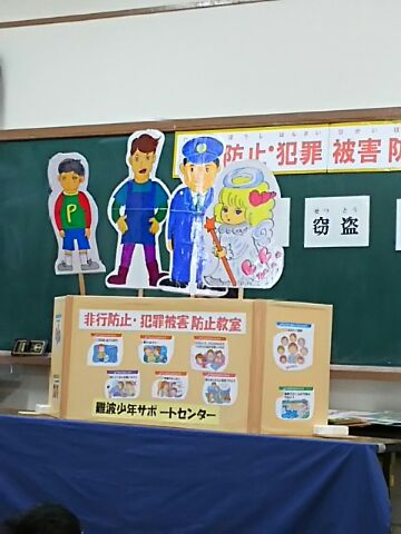 ゲストティーチャーに難波少年サポートセンターの方々をお迎えし、非行防止教室を行いました。人形劇で『社会のルールを守ること』『被害者や家族の気持ちを考えること』『非行に誘われた時に、勇気を持って断ること』の大切さを教えて頂きました。