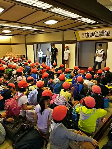 オリエンテーリングと川遊びが終わり、宿舎で昼食をいただきました。三重県赤目での林間学習もすべての活動を終了し、閉舎式を行いました。子どもたちは2日間、豊かな自然の中で楽しく活動することができました。少し予定を早めてこのあと学校に向けて出発します。