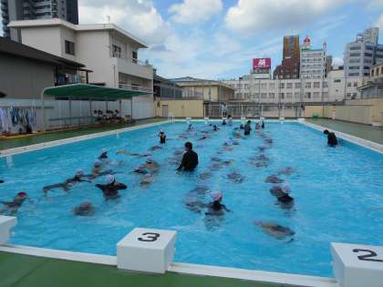 プールでは先生の話をよく聞き、安全に気をつけながら水遊びを楽しんでいます。水の感触に笑顔がこぼれ、友だちとの関わりも深まっています。