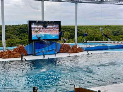 多くの子どもたちがイルカショーを楽しみました。ウォータースプラッシュの演出もあり、思い出に残る一場面となったことでしょう。