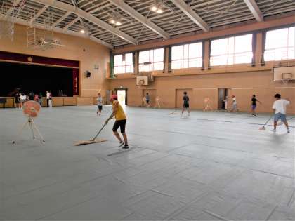 出席されるみなさまに喜んでいただくため、子どもたちは心を込めて準備を進めています。6年生が講堂のシートを丁寧に敷いたり、椅子を並べたりと、協力して一生懸命に準備する姿はとても素敵でした。