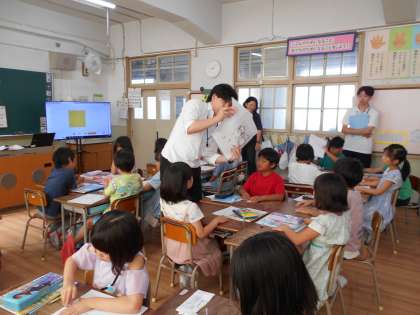 教育実習生が授業を行いました。2年算数では四角形を作って調べ、4年理科では筋肉のはたらきを実験で確かめ、5年算数では倍数の意味を理解しました。どの学級でも子どもたちは主体的に学習に取り組み、温かい雰囲気の中、実習生にとっても貴重な学びの時間となりました。