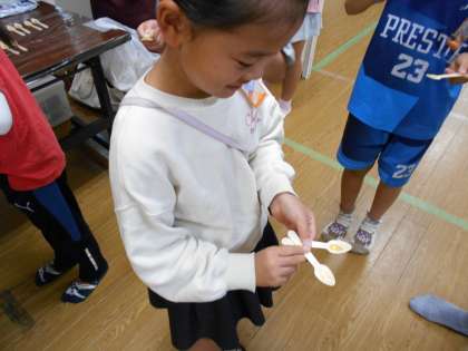 続いて、女王バチや働きバチ、巣箱や採蜜道具を見たり、春と夏のはちみつの味比べも体験しました。「春のはちみつがさらっとしていた!」と、季節の違いを感じる感想もたくさん聞かれました。
