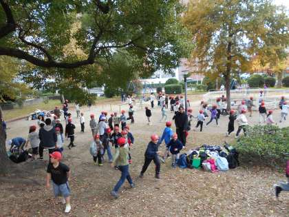 海遊館を見学した後は、日本一低い山の天保山がある天保山公園で、元気いっぱいに遊びました。鬼ごっこをしたり、遊具で友だちと遊んだりしながら、体を思いきり動かして楽しみました。お弁当の準備など、保護者の皆さまにはご協力いただき、ありがとうございました。
