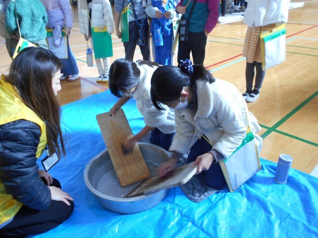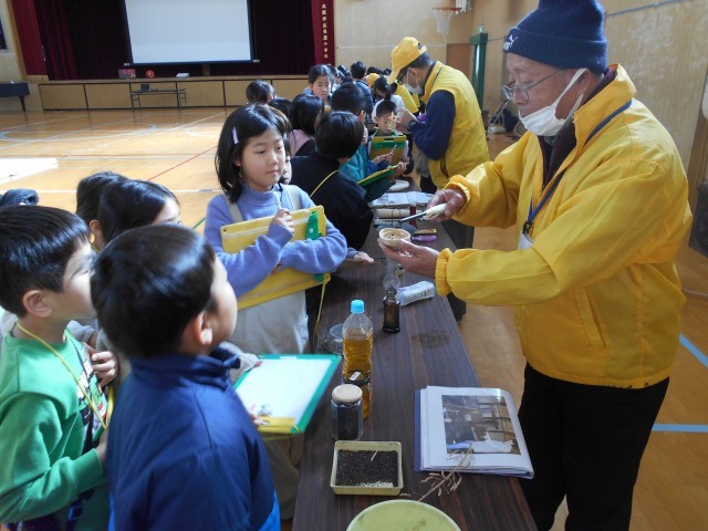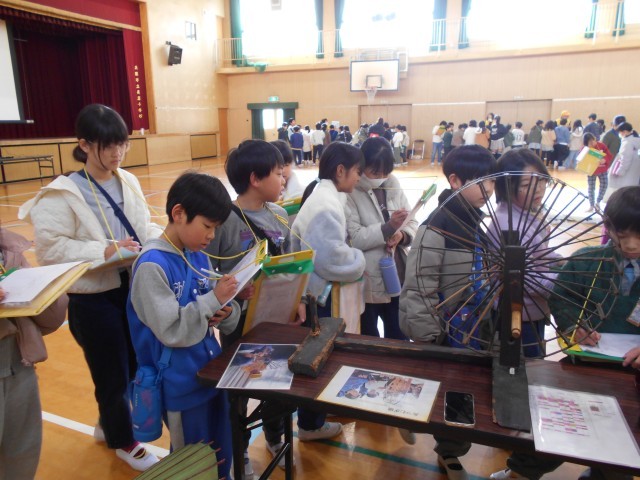NPO法人すみよし歴史案内人の会の皆様にお越しいただき、出前授業を実施しました。子どもたちは、炊事道具・暖房道具・照明具・家事の道具のコーナーを回り、それぞれの道具の使い方や昔の暮らしの様子について教えていただきました。実際に触ったり体験したりすることで、学びが一層深まったと思います。