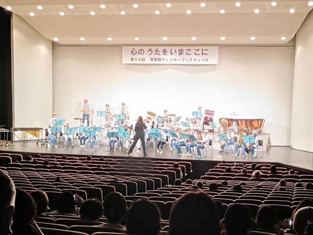 大阪府内の小学校・団体が池田市のアゼリアホールに集い、ウインターフェスティバルが開催されました。会場では、それぞれの学校・団体が日頃の練習の成果を発揮し、心のこもった演奏を披露しました。