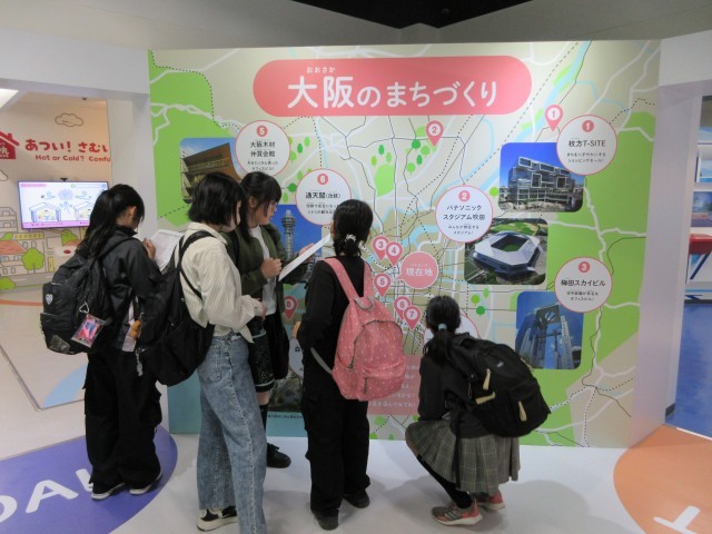 続いて、グループごとに自由見学を行いました。館内には、エネルギーや環境、通信、ものづくりなどに関する多くの体験型展示があり、子どもたちは友だちと相談しながら、興味のある展示を選んで見学していました。