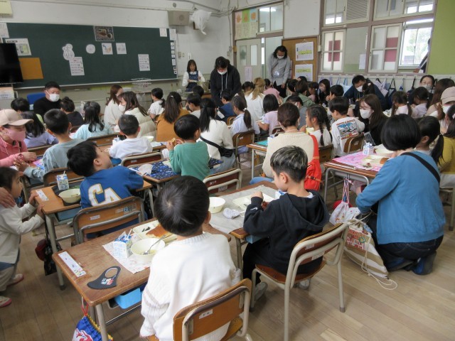 運搬や配膳は、6年生に手伝ってもらいながら、自分たちでできることにしっかり取り組む姿が見られました。