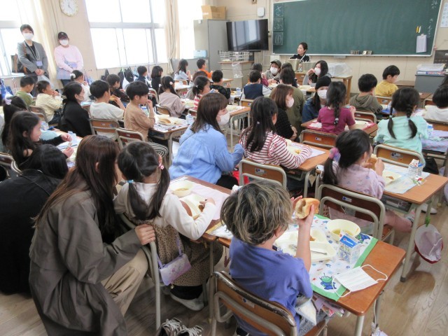 「いただきます」のあいさつの後は、保護者の皆様に見守られながら、うれしそうに食べ進める子どもたちの表情が、とても印象的でした。