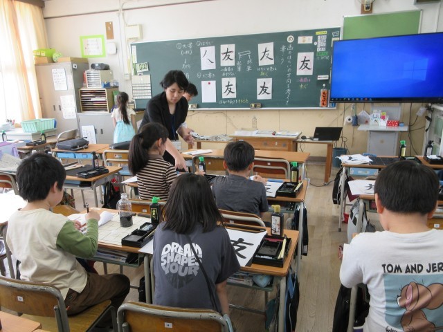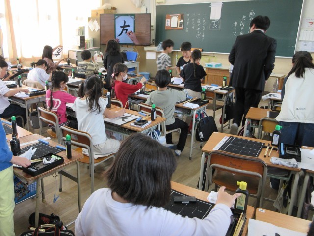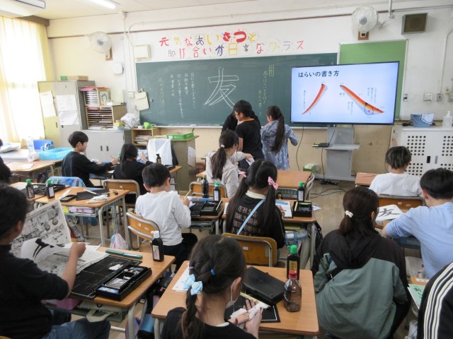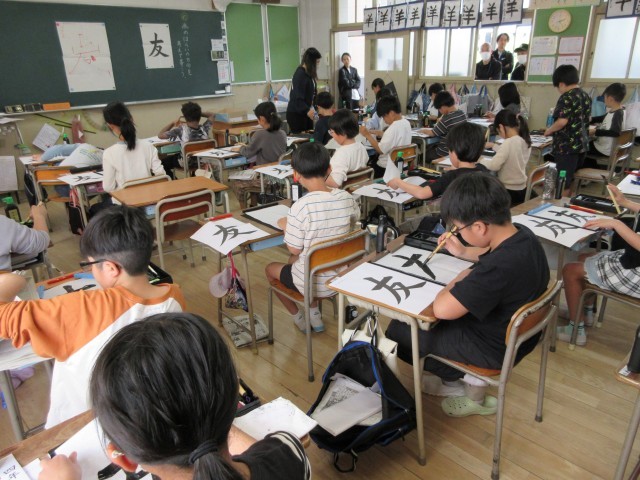 4年生は、書写「友」の学習の様子をご覧いただきました。