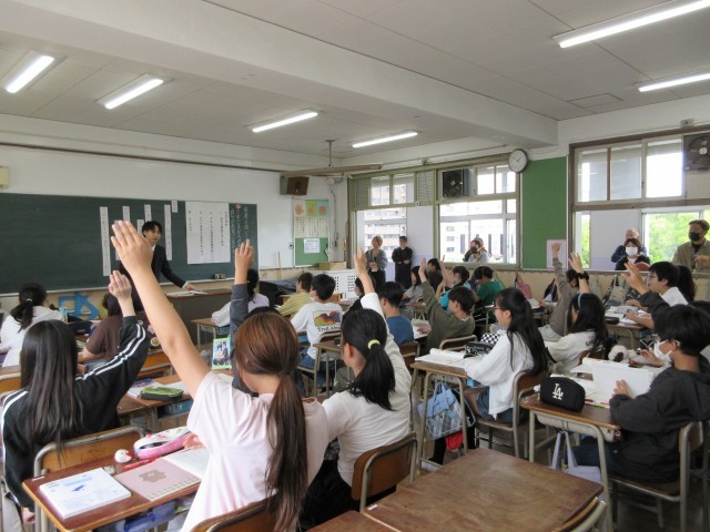 進んで手を挙げる児童の姿や、グループで意見を交流する様子が見られました。相手の意見をよく聞きながら、自分の考えを広げようとする意欲的な様子が印象的でした。