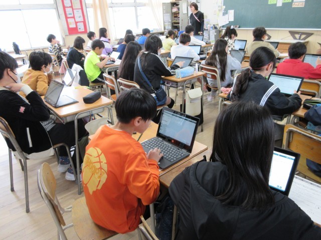 子どもたちは画面上の質問に対して、自分の学びや生活を振り返りながら、ていねいに回答していました。落ち着いた雰囲気で、主体的に取り組む姿が見られました。