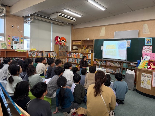 今日から、図書委員会のイベント「聞いて聞いてビンゴ!」が始まりました。今日は、図書ボランティアさんが英語で「じぶんだけの いろ ~A color of his own~」を読み聞かせしてくださいました...