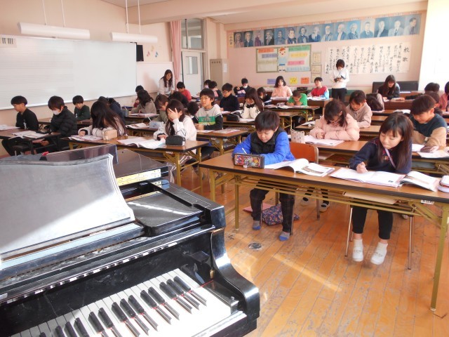 4年生の授業で、グリーグ作曲「ノルウェー舞曲 第2番」を鑑賞しました。オーケストラの編成や旋律に注目しながら、曲の流れを感じ取り、全体を味わって聴く学習です。音楽に合わせて体を動かす活動も取り入れ、子...
