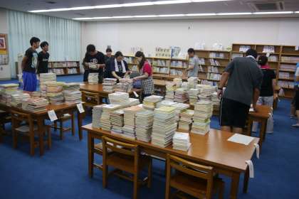 本日は、蔵書点検といって、学校図書の確認を行いました。全ての本をバーコードで読み取ったり、きれいに本を拭いたりしました。これからも本を大切にしたいですね。