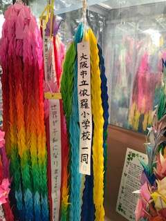 依羅小学校のみんなで作った千羽鶴を奉納しました。