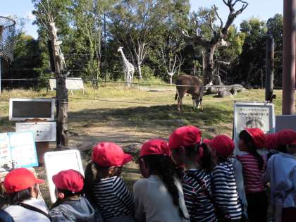 秋の遠足で天王寺動物園に行ってきました。前回は雨で延期になってしまいましたが、今回は、とても良いお天気でした。たくさんの動物を見ることができ、ズー・スクールでは、動物の食べ物について学習することもできました。
