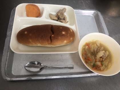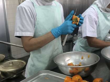 今日の給食は、鶏肉のガーリックマヨネーズ焼き・スープ・かき(富有柿)・おさつパン・牛乳でした。今日は旬の柿が150個届き、きれいに洗った後、ひとつひとつ皮をむいています。鶏肉のガーリックマヨネーズ焼きは、どのクラスでも大人気で、おかわりにたくさんの手が上がっていました。作り方は、学校給食献立表にQRコードが載っていますのでそちらを読み込んでご覧ください。住吉区は3ブロックです。