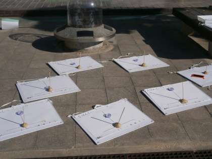 当日は、一時間ごとに温度を測り、刺した割り箸でできる影を写し取ります。