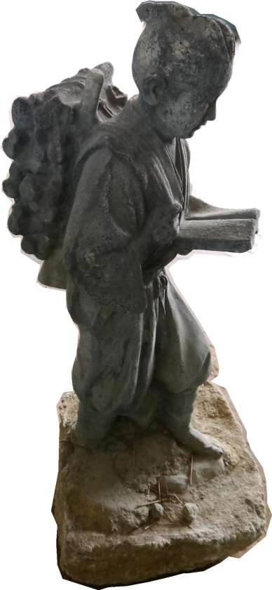 (写真下)今は、どこかの教室に安置されてある二宮金次郎像を探しだすという
