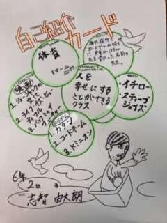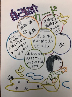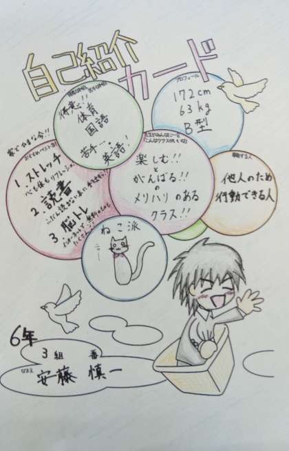皆さんと早く学習がしたいです。6年担任の自己紹介カードです。皆さんの自己紹介カードを早くみて皆さんのことをもっと知りたいです。