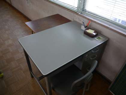 今は子どもたちがいないので机も片付いていますが、子どもたちが活動を始めると宿題や配布プリントなどで、なかなかこの状態は保てないかも…