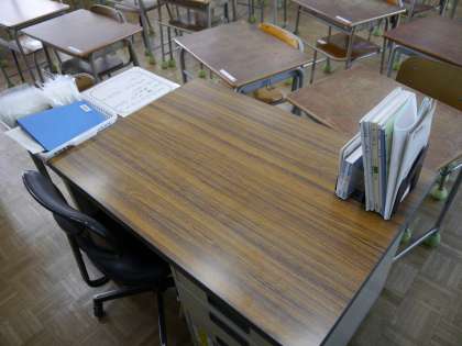 今回は、教室の先生の机です。それぞれ何組でしょうか?