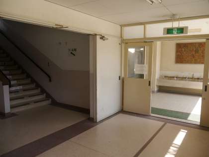 靴箱は通用門を入って左側