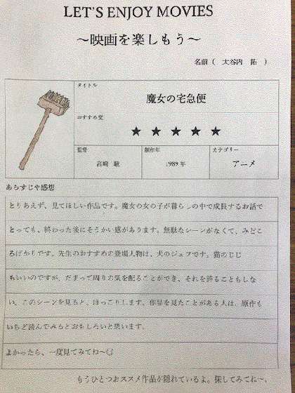前回(少し前になりましたが…)に引き続き、今回は6年生の担当の先生のおすすめの映画の紹介です。まだ見たことがない人は、ぜひどうぞ☆