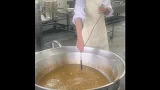 依羅小学校で1回の揚げ物に使う油の量は、3缶分でした。54L(500mlのペットボトル108本分)、48kgの油を使うことになります。すごい量ですね。