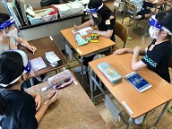 フェイスシールドをつけながら、「こうしたらかっこよくできる!」や「もっと明るい色で書こう!」など、意見交流しながら、楽しく活動していました。