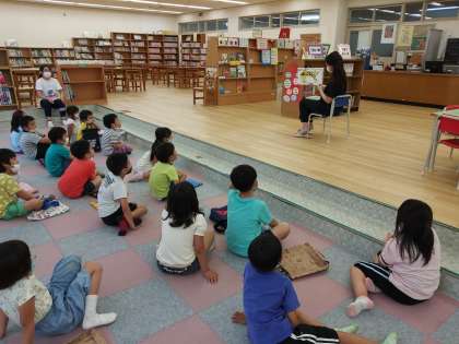 ◆図書室で、絵本にあるお話を聞きました。クラスごとに図書室へ行きました、そして、中垣先生が「ながい5ふん みじかい5分」など、楽しいお話を読んでくれました。