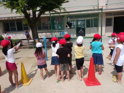 ◆1年生はこんしゅう、運動場で風遊び、水遊びをします。